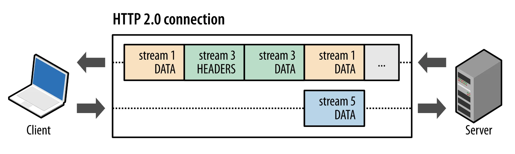 这种设计允许在同一连接上有多个并行的数据流,通过帧的流 ID 将交错发送的帧重组为完整的消息,从而实现了多路复用和乱序发送。