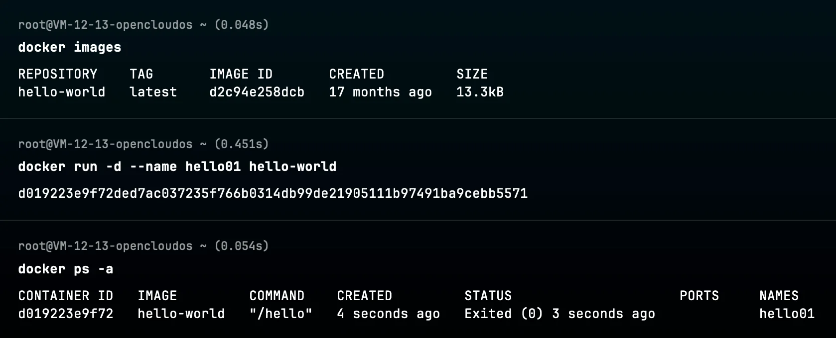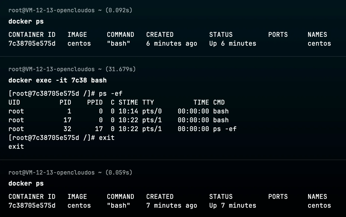 docker run 是启动容器的方法,容器启动后返回的是 “长 ID”,我们可以通过这个长 ID 去访问这个容器,也可以通过启动时指定的名字访问这个容器。docker ps 能够看到容器的 “短 ID”,通过短 ID 同样可以访问这个容器,甚至只要能够唯一标识这个容器也可使用更短的 ID。