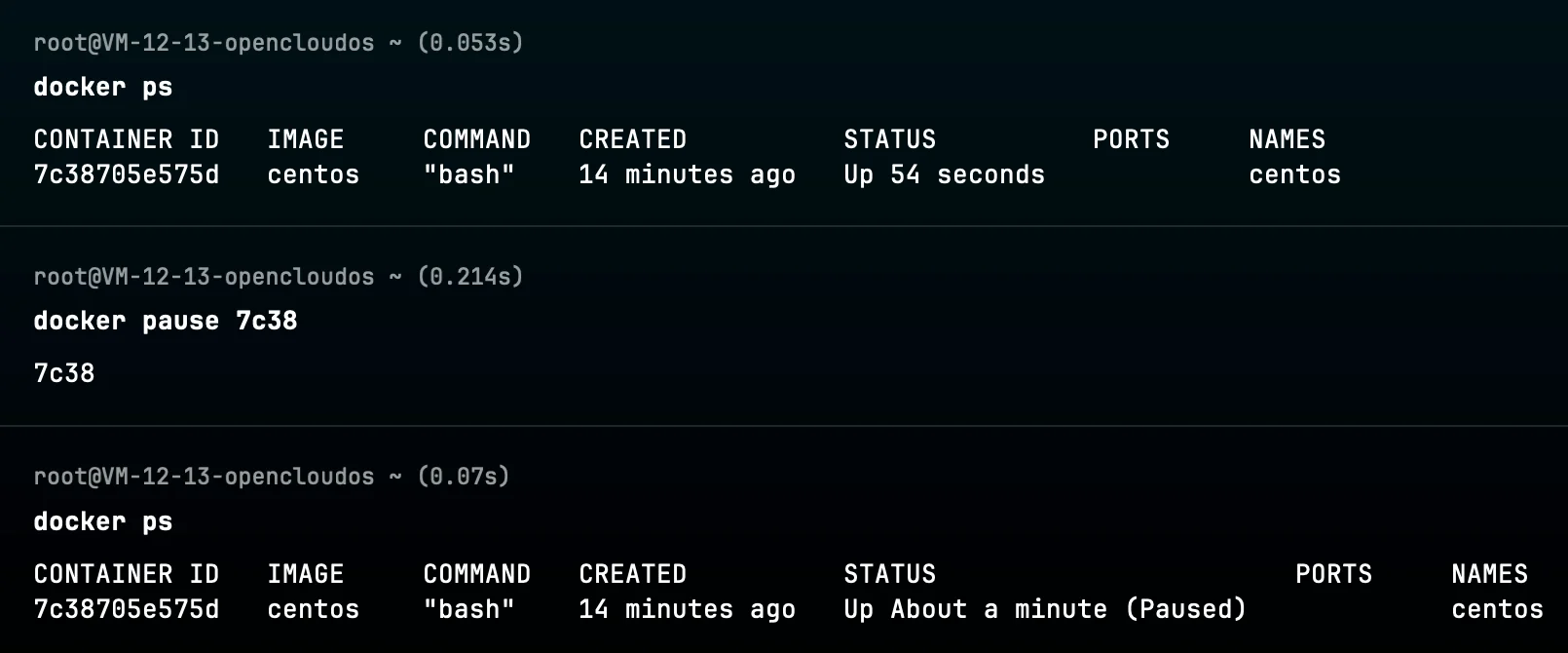 有时我们只是希望暂时让容器暂停工作一段时间,比如要对容器的文件系统打个快照,这时可以执行 docker pause,打完之后就可以唤醒容器。