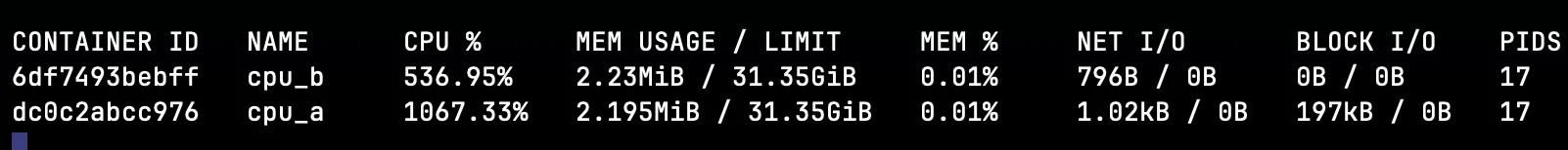 docker run --name cpu_b -it -c 512 -d my-stress stress --cpu 16